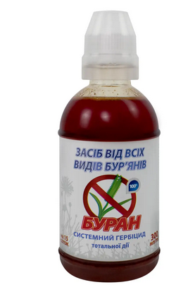 Буран 300 мл - Системний гербіцид суцільної дії, призначений для застосування на присадибних ділянках. Водний розчин.