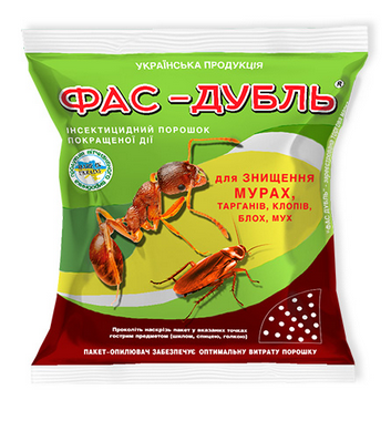 Універсальний інсектицидний засіб широкого спектру впливу Фас-дубль використовується для ліквідації комах: мурах, тарганів, клопів, бліх, мух. Даний препарат включає до складу токсичну для комах речовину - ацетаміприд. Потрапивши в організм комахи, ацетаміприд порушує ряд життєво важливих функцій у нервовій системі, що призводить до безперервного збудження нервових клітин та порушення передачі нервових імпульсів, внаслідок чого комаха гине від паралічу. Активний компонент препарату запобігає виникненню резистентності у комах-шкідників, при цьому отруєна комаха розносить препарат по всій колонії, заражаючи інших родичів. Препарат також містить спеціальний наповнювач, який є приманкою для комах.