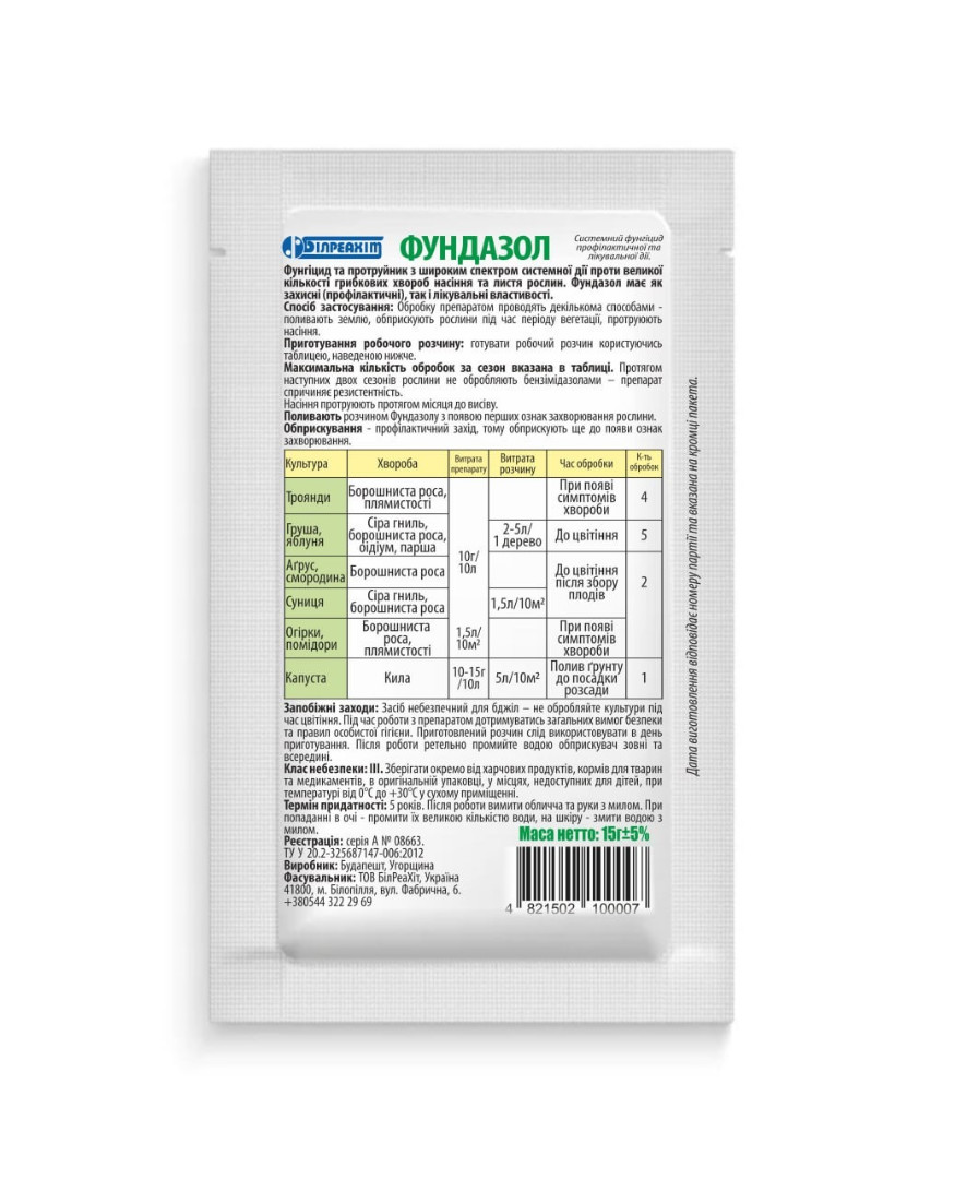 Високоефективний препарат, використовується для лікування та профілактики різних захворювань сільськогосподарських культур овочевого типу (яблуня, груша, персик, черешня, капуста, огірки, помідори, виноград, крижовик, смородина, троянди). Ефективно проти таких захворювань, як борошниста роса, сіра гниль, гідіум, парша, кала, антрактоз, плямистості та інші. Цей фунгіцид миттєво проникає в рослину та зупиняє розвиток хвороб навіть у важкодоступних місцях. Засіб ефективно діє в разі осадів і несприятливих погодних умов завдяки своїй системності, водночас препарат є безпечним для культур. Активна речовина — беноміл.