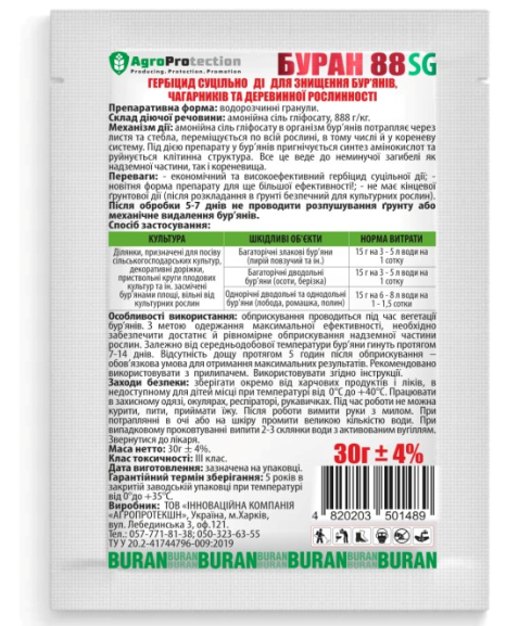 Сухий гербіцид Буран 88SG гранули 30г