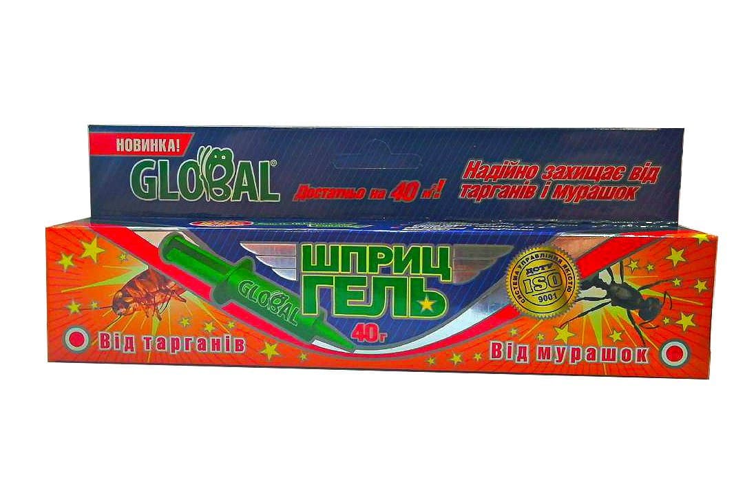 Глобал гель - шприц 40 г від тарганів, мурах і домашніх мошок! Вміст упаковки розраховано на обробку до 40 м2.