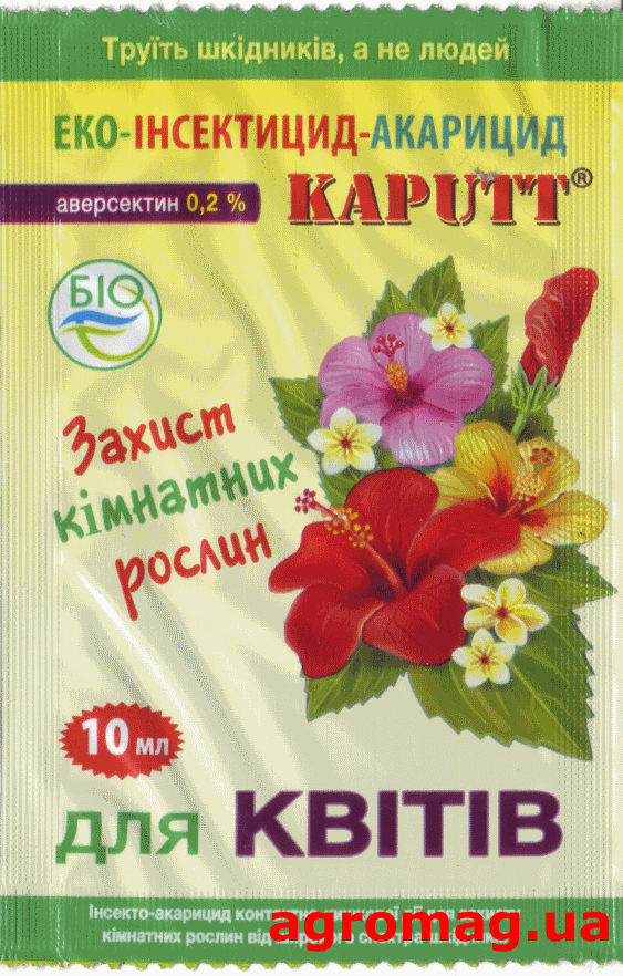 Kaputt (Капутт) для кімнатних квітів - комплекс природних авермектинів, що продукуються грунтовим грибом Streptomyces avermitilis. Авермектини - це природні високоспецифічні нейротоксини, які, проникаючи в мікродозах в організм членистоногих шкідників кишковим або контактним шляхом, вражають їх нервову систему. Даний препарат має високу ефективність, селективність і м'які санітарно - гігієнічні - та екологічні характеристики. Препарат безпечний для людини і тварин.