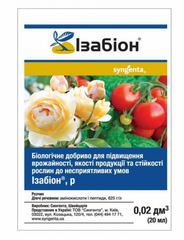 Застосування Ізабіону забезпечує рослинам необхідний комплекс амінокислот і пептидів, знижуючи потребу додаткової енергії з їхньої синтез. Ізабіон позитивно впливає на приживання рослин, збільшення кількості та смакових якостей плодів, а також знімає стрес у рослин після граду, посухи та різких перепадів температур.