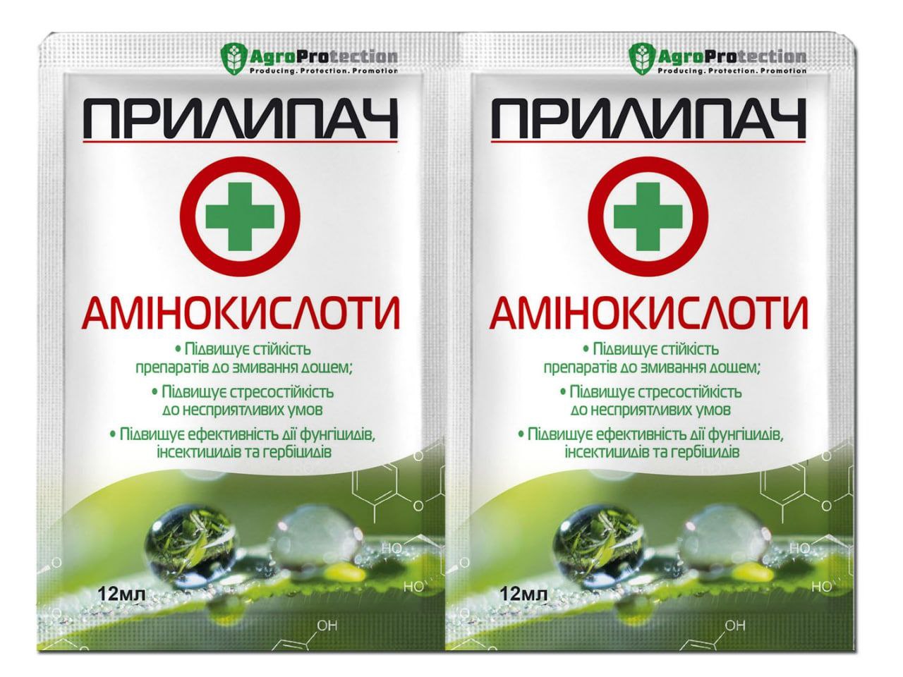 Прилипач з амінокислотами, 12 мл - поверхнево-активна речовина (ПАР) призначена для покращення покриття, вмісту та проникнення робочих розчинів засобів захисту рослин та добрив, що підвищує їх ефективність.