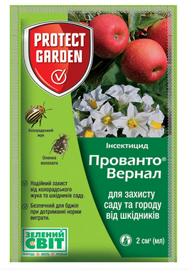 Обробляють рослини методом обприскування свіжоприготовленим розчином Прованто Вернал в безвітряну суху погоду, краще в ранковий або вечірній час, коли відсутній років бджіл.