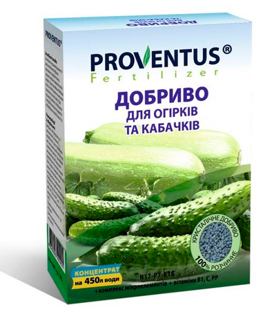 Провентус - кристалічне добриво для огірків і кабачків (300 гр) - високоефективне, концентроване, мінеральне добриво, що містить усі необхідні для живлення рослини елементи в доступних формах.