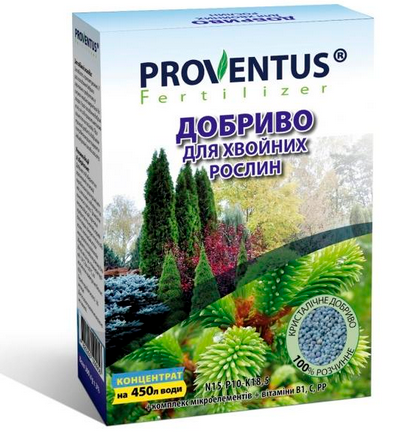 Провентус- кристалічне добриво для хвойників (300 гр) – високоефективне, концентроване, мінеральне добриво, що містить всі необхідні для живлення рослини елементи в доступних формах.