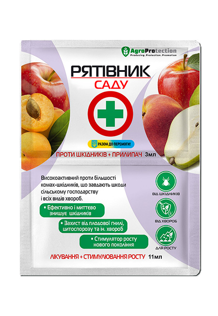 ЧОТИРЬОХкомпонентний комплескний засіб для захисту саду «РЯТІВНИК» від переважної кількості шкідників та всіх видів патогенних організмів (хвороб).
