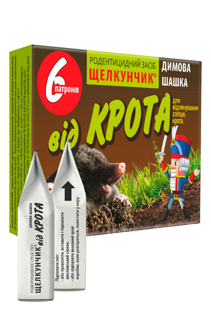 «Лускунчик - патрони від крота» призначені для боротьби з кротами, слепиша, і всіма видами мишоподібних гризунів в домашніх умовах.