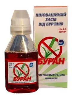 Буран 100 мл - Системний гербіцид суцільної дії, призначений для застосування на присадибних ділянках. Водний розчин.