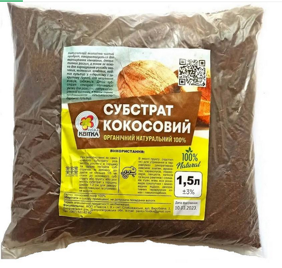 Натуральний екологічний кокосовий субстрат, використовується для вирощування кімнатних і декоративних рослин, а також в якості основи під посадку овочевих, квіткових, плодово-ягідних культур у відкритому та закритому ґрунті.