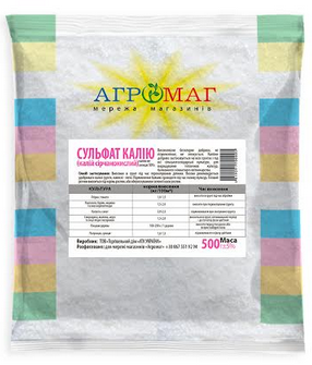 Сульфат Калію, 500 г - калій сірчанокислий (K2SO4) - високоякісне безхлорне добриво.