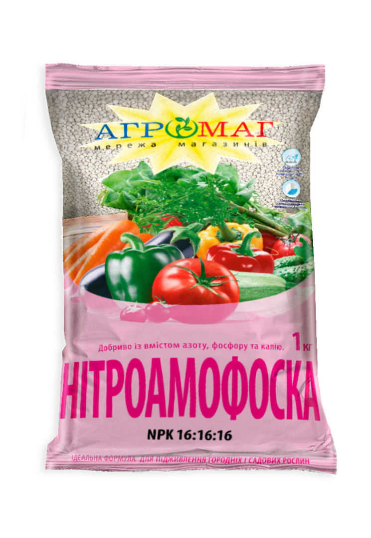Нітроаммофоска складне азотно-фосфорно-калійне добриво. Застосовується для основного, передпосівного та місцевого внесення до рядків при сівбі, а також для підживлення рослин, що підходить практично для всіх видів сільськогосподарських культур.
