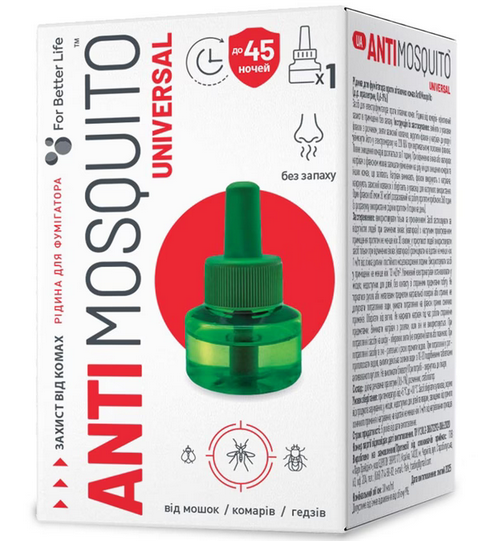 Рідина проти комарів для електрофумігаторів ANTImosquito 45 ночей, 30 мл